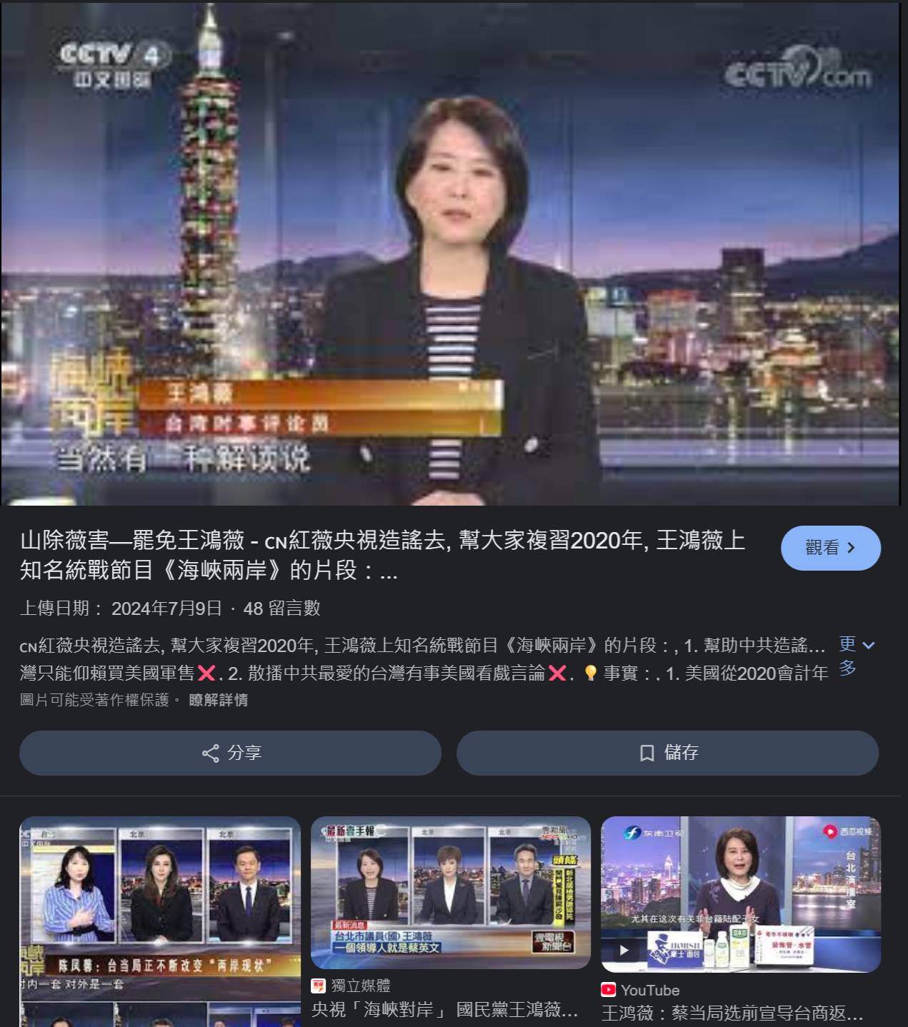 而且王鴻薇是台灣第一個上中國央視政論罵