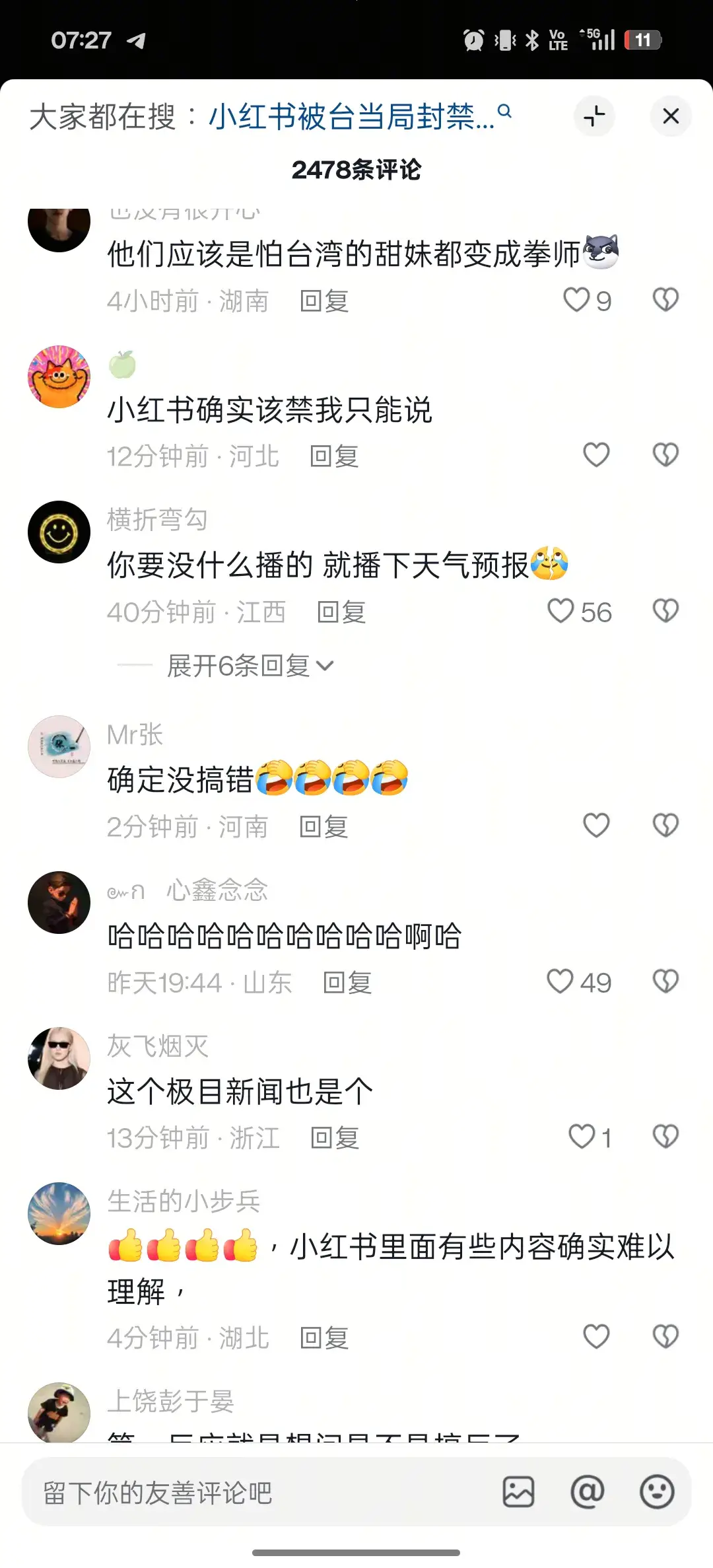 https://i.meee.com.tw/hR2l89E.png 該禁 沒啥能播就播天氣預報 小紅書內容難以理解