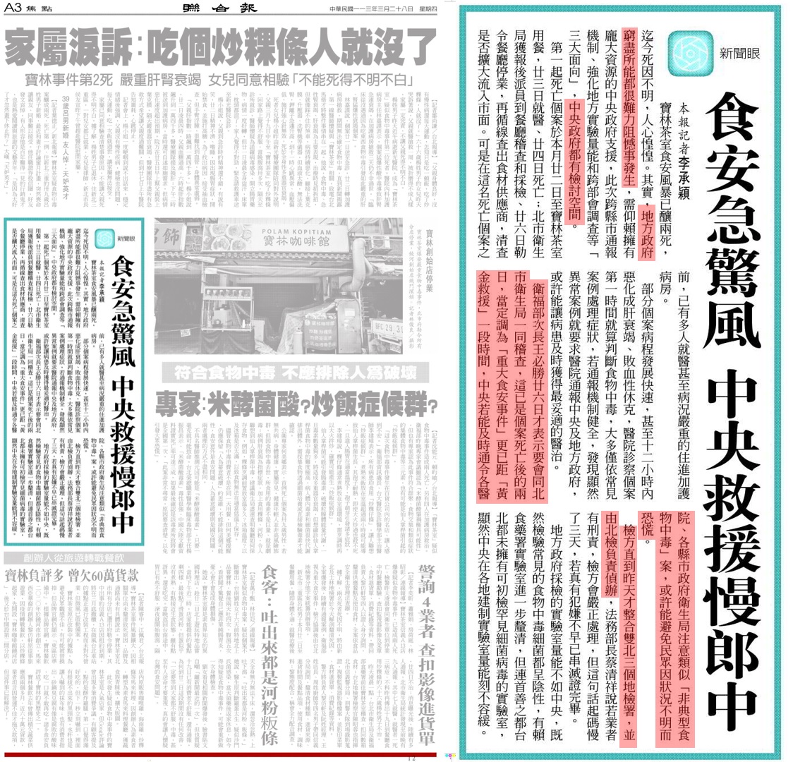28日紙本A3有驚人的特稿,標題是:食安急驚風 中央救援慢郎中