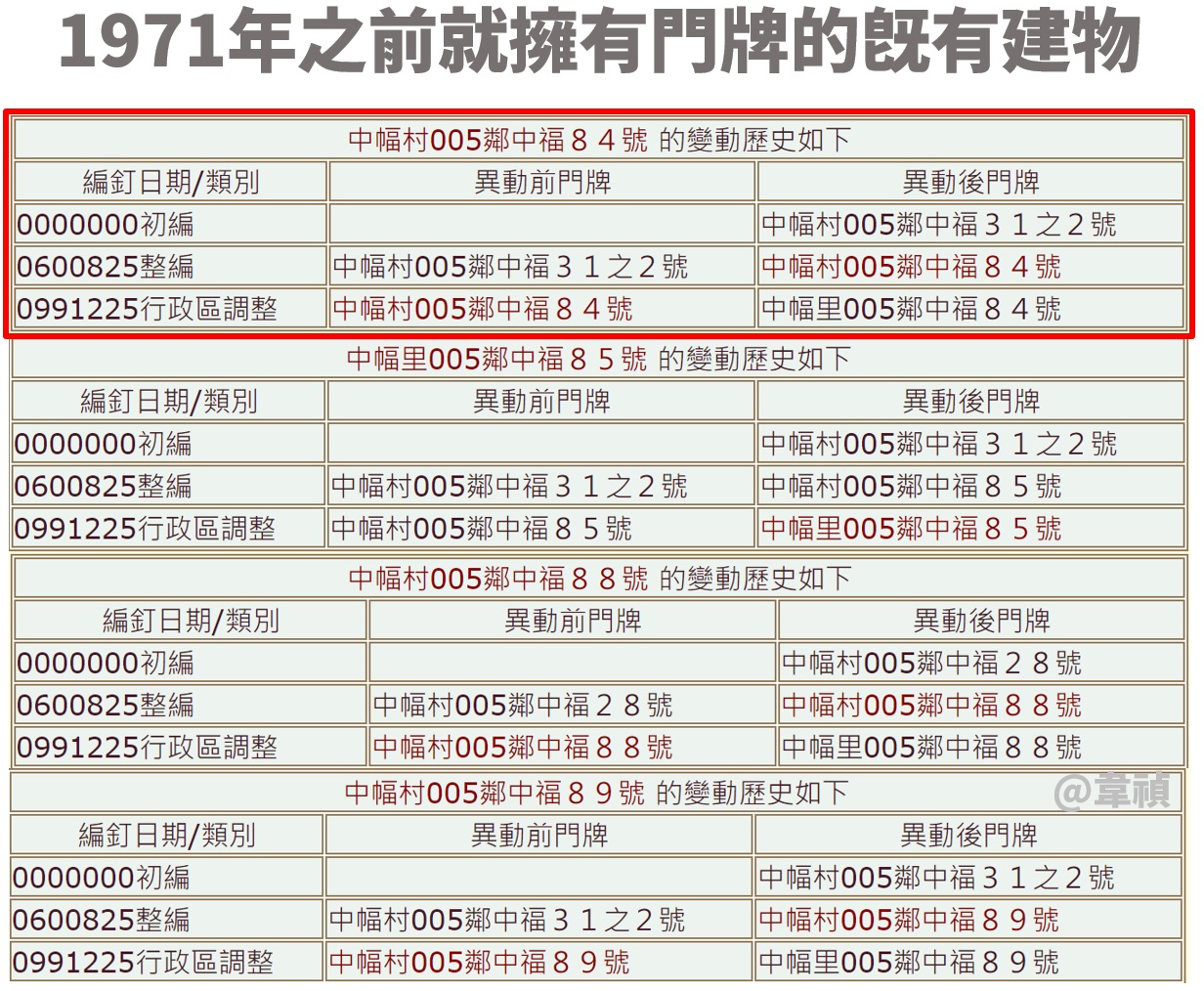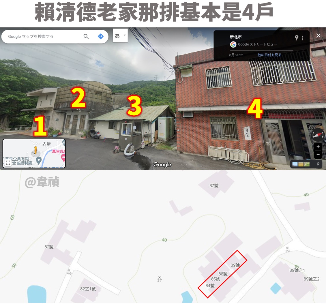賴老家這排基本上有4戶:84號、85號、88號、89號