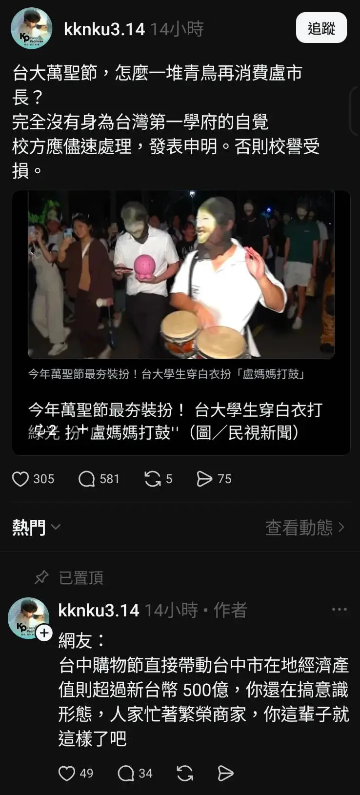 萬聖節之夜台大一堆人消費盧媽媽的事情