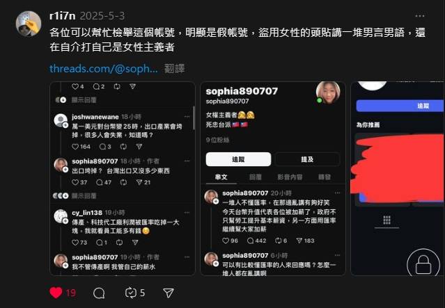 這隻就Threads上三大反串帳號