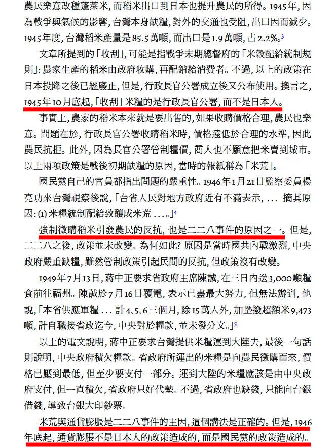 : 這個事件,可以說當時全部住在台灣用台幣的人都被狠狠地刮去一層民脂民膏,一年三穫的: 台灣也搞到餓死人,甚至後來出現228事件的巨大衝突,這是不是蔣中正對台灣最大的貢獻?