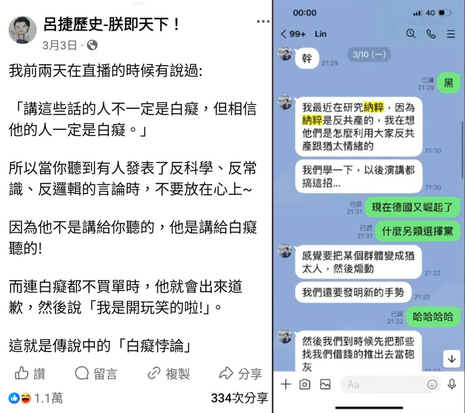 他私line被公開 他也澄清是嘴砲 也道歉了
