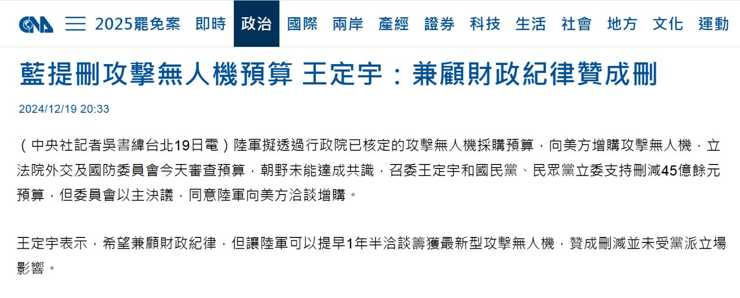 民眾黨宣稱今年刪除國防預算是歷年新低的謠言。