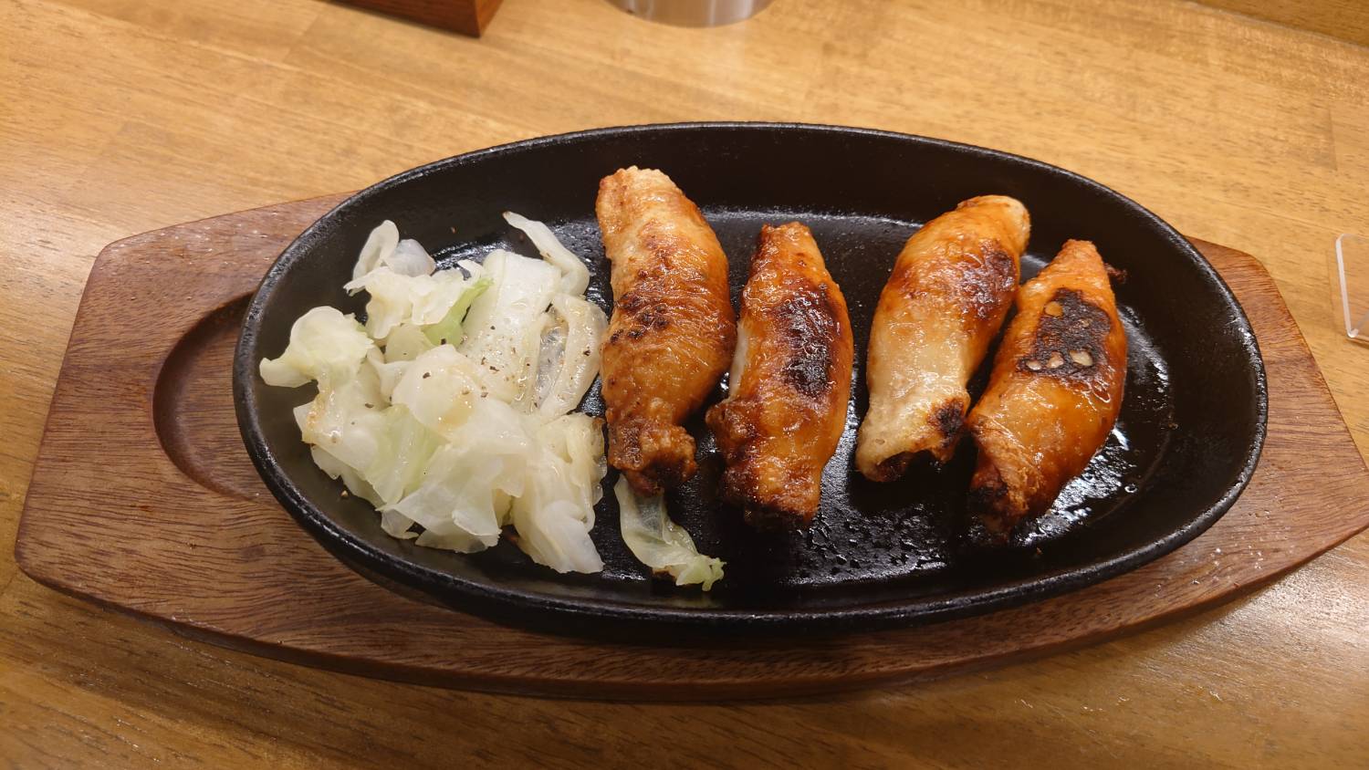 還點了菜單推薦菜色的鐵板雞皮餃子跟地雞肉味噌。
