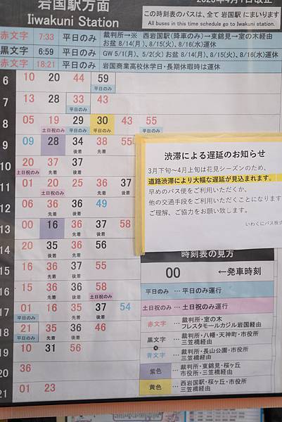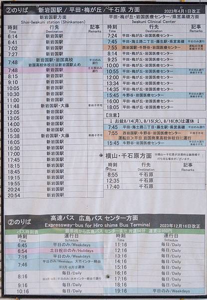新岩國站裡有錦川清流線.清流新岩國站的時刻表。