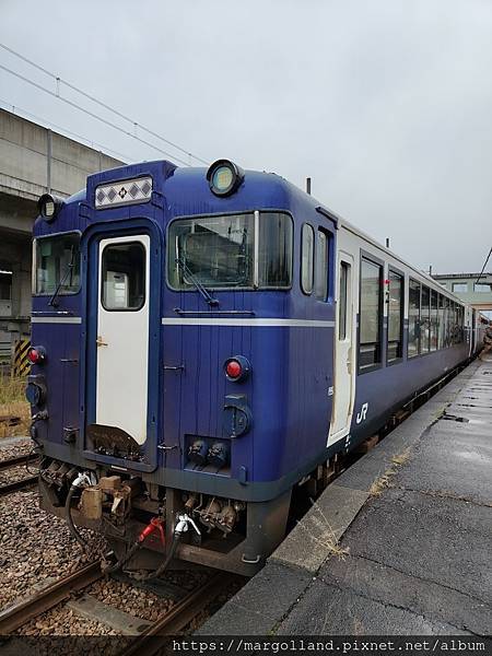 越乃列車的外觀是藍色系,乍看跟台鐵的復興號有點像,但是人家的細節多太多了,像是那個第一車廂精美的落地窗,跟第二車廂的酒藏風格造型等等。但列車開車時,沒有想像中很多人出來歡送,是因為現在不是旅遊旺季嗎?讓我們心裡有小小失望一下。