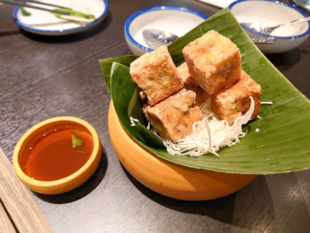 豆腐鑲入芋頭和香菇再酥炸而成,
