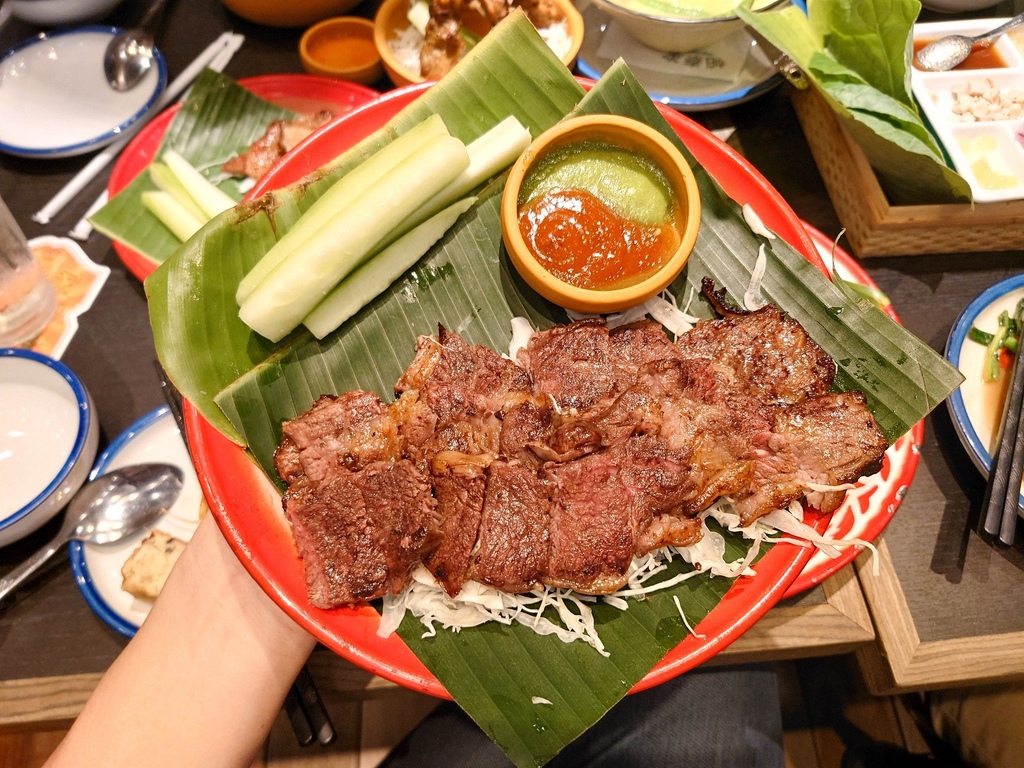 選用牛肩小排塗上泰式香料醬再燒烤,