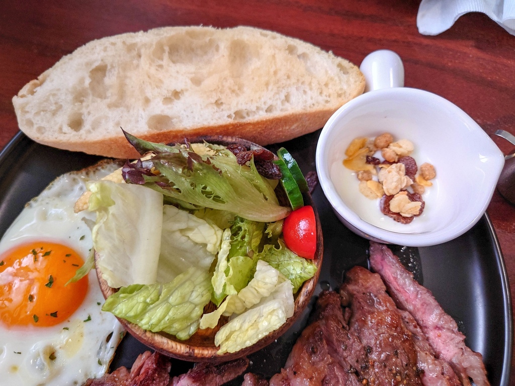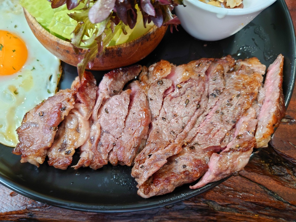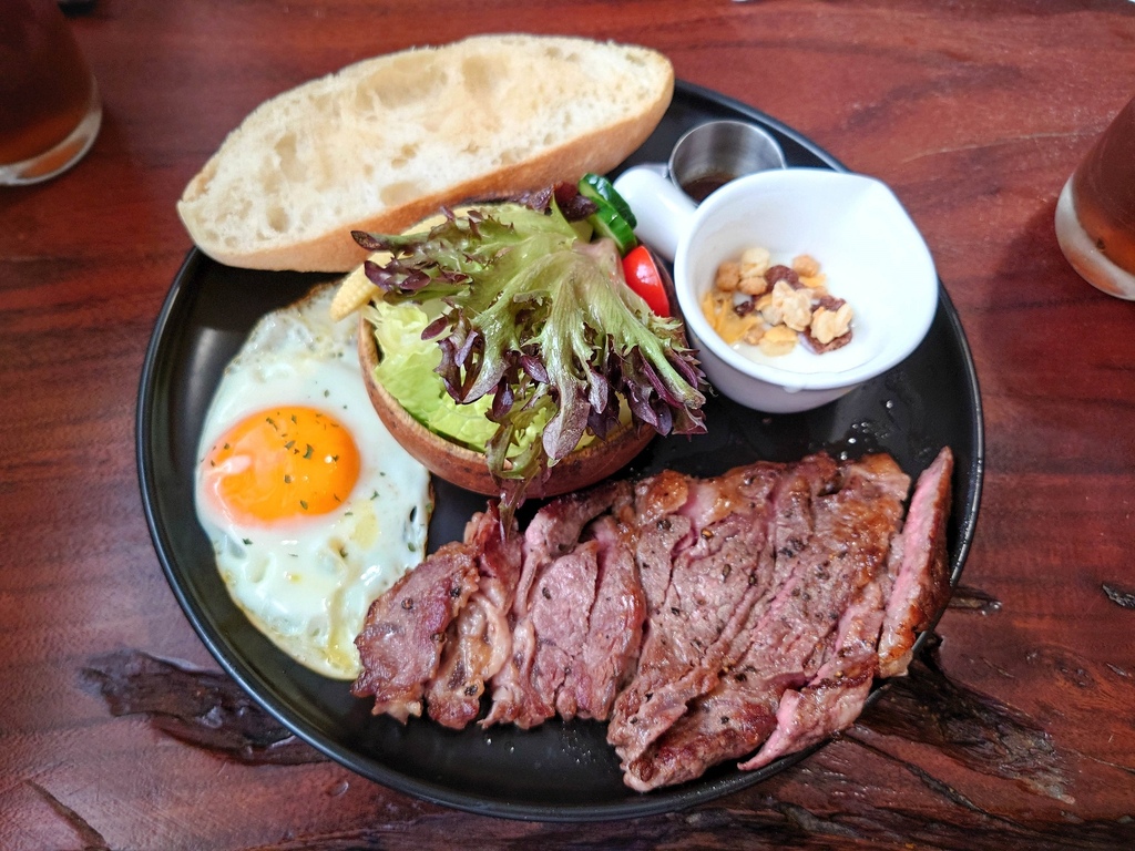 將牛排沾上濃密稠滑的蛋黃一起吃挺美味的呢!