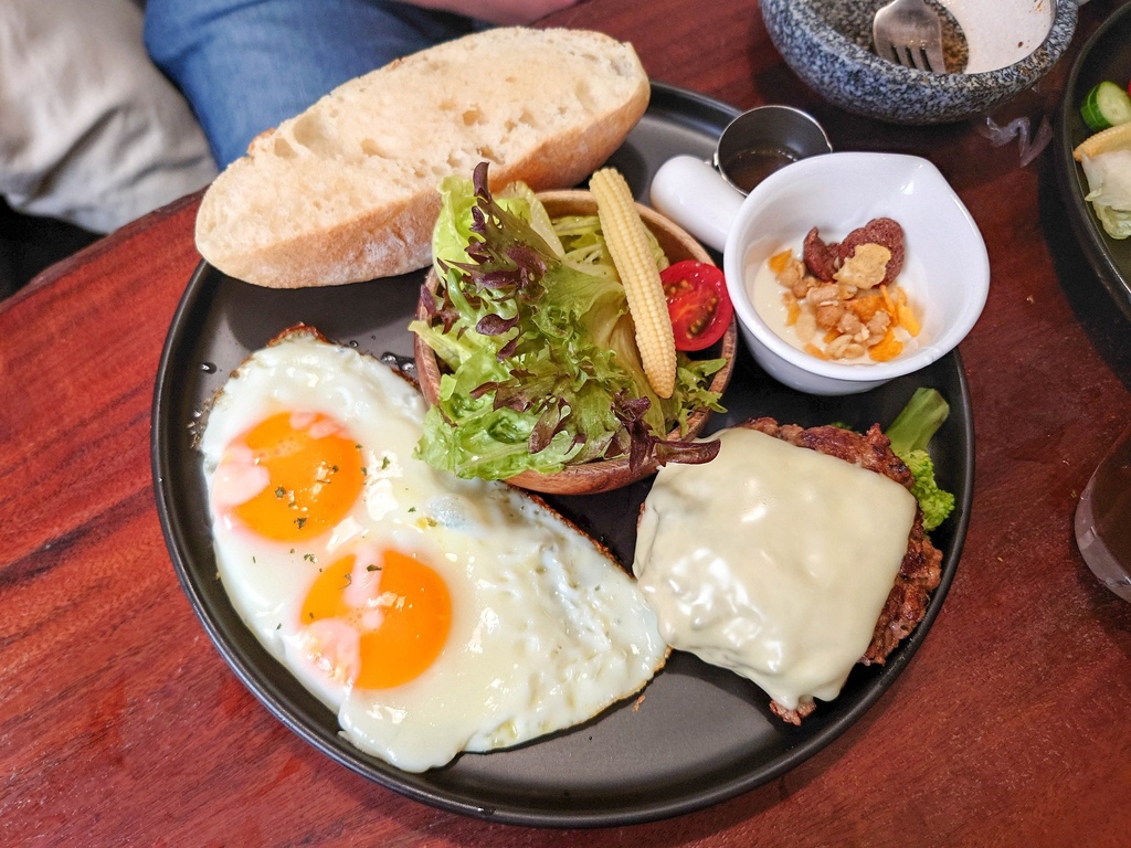 主餐包括拼盤式早午餐、歐姆蛋捲、帕尼尼、庫克三明治、飯食、漢堡,