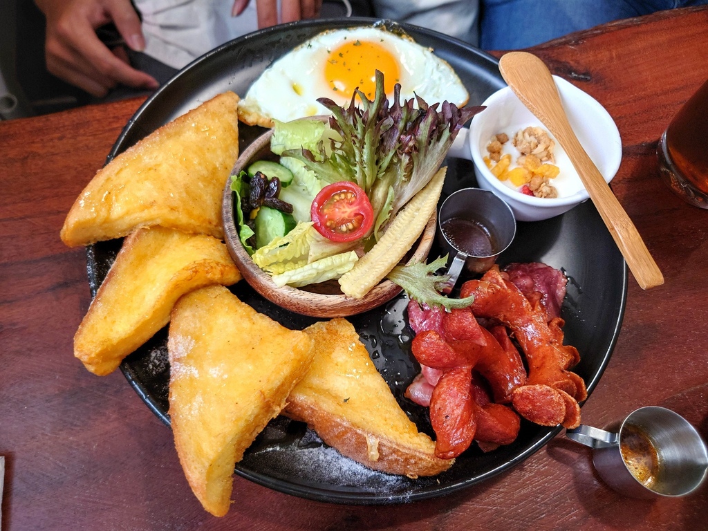 當天跟高中同學們爬完柴山後到「亨寶咖啡」吃一頓這樣的早午餐,