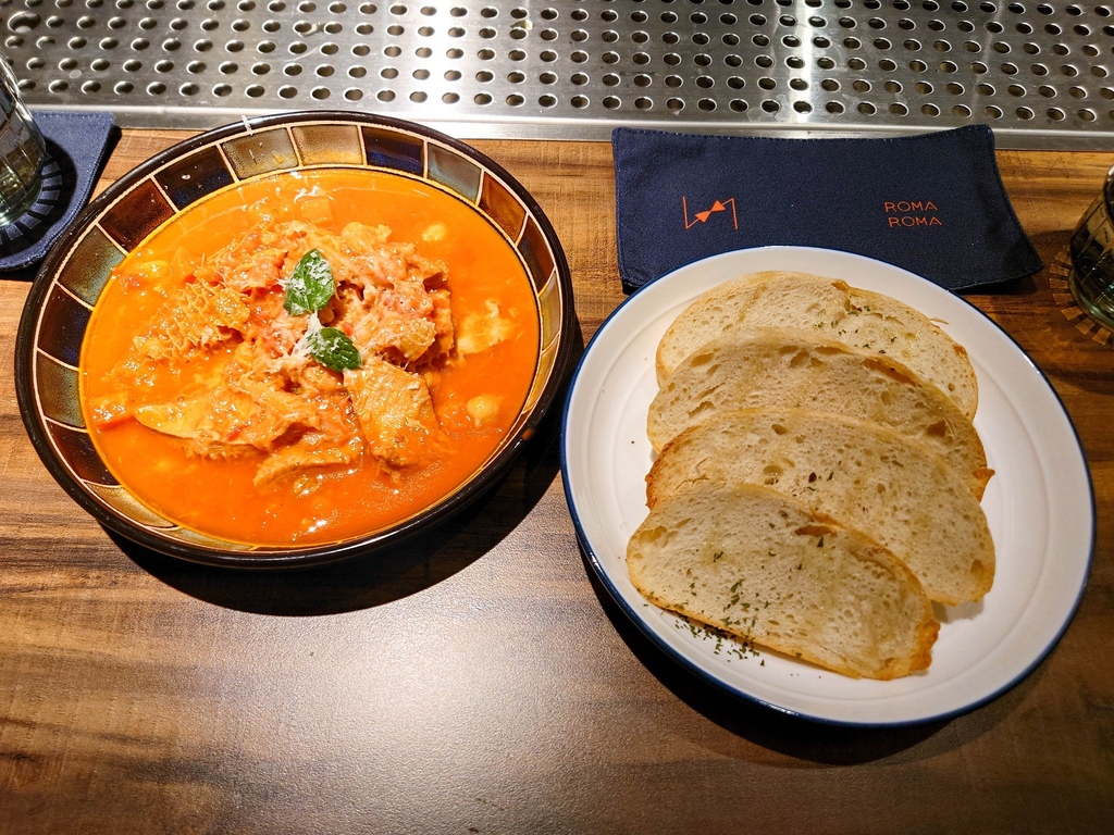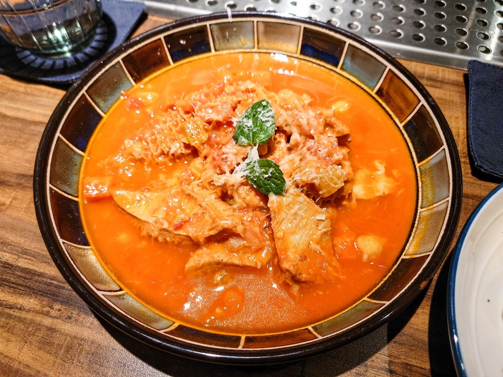 附上的橄欖麵包搭著牛肚和番茄高湯蠻好吃的。