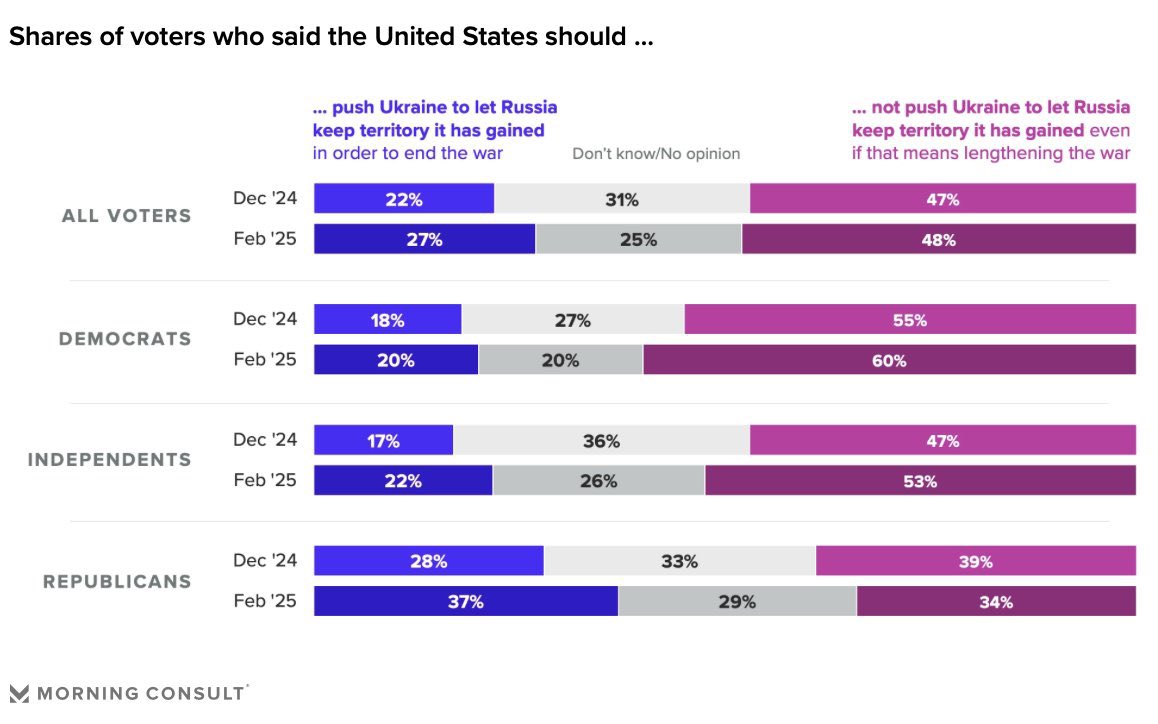 美國民調顯示,越來越多美國民眾支持美國敦促烏克蘭割地求和,