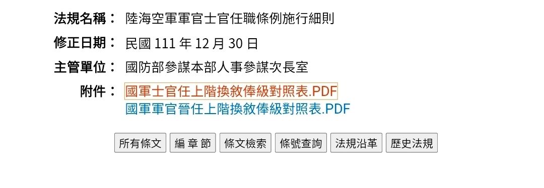 所以施行細則跟換敘表 國防部頒布的公告都是假的? 目前國防部法規資料庫最新版還在 上面