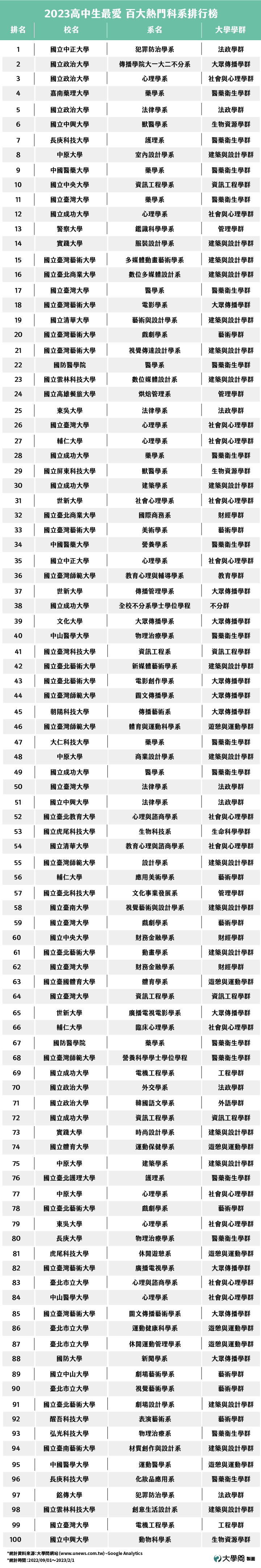 標題: [新聞] 2023高中生最愛 百大熱門科系排行榜出爐