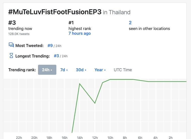 這集播出後在X平台的泰國流行趨勢(聲量)排行榜最高是第1名