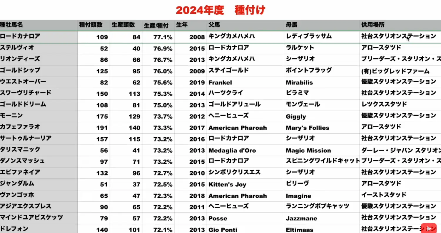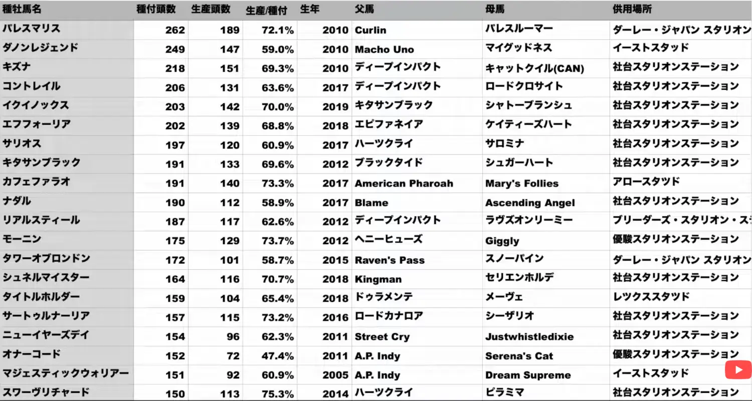 パレスマリス真的猛 配了262頭出生189頭 第二名的阿絆也只有151頭