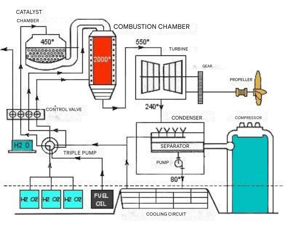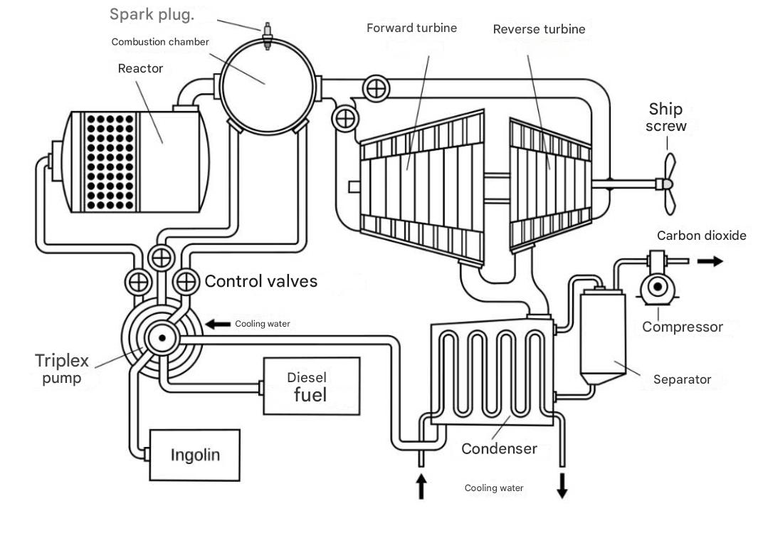 會投入燃燒室與柴電潛艇的燃料(柴油)混燒 爐心溫度達到驚人的2000度
