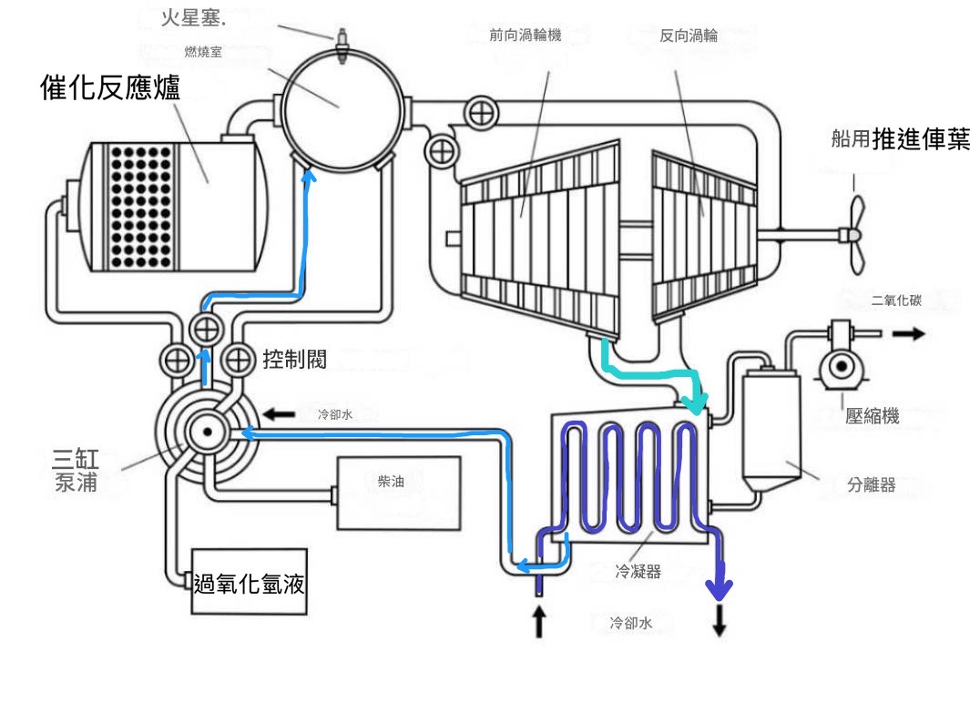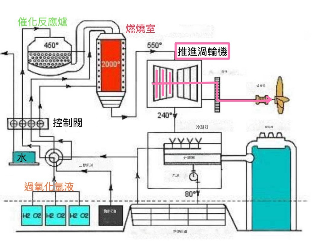 來推動渦輪輪機運轉 從中獲得軸輸出來推進潛艇絕氣高速航行
