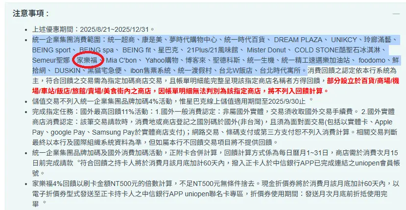 統一集團終於包括家樂福了?那集團通用禮券跟家樂福