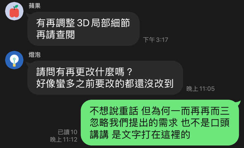 具體原因是 我們的要求不斷被設計師已讀跟忽略沒改