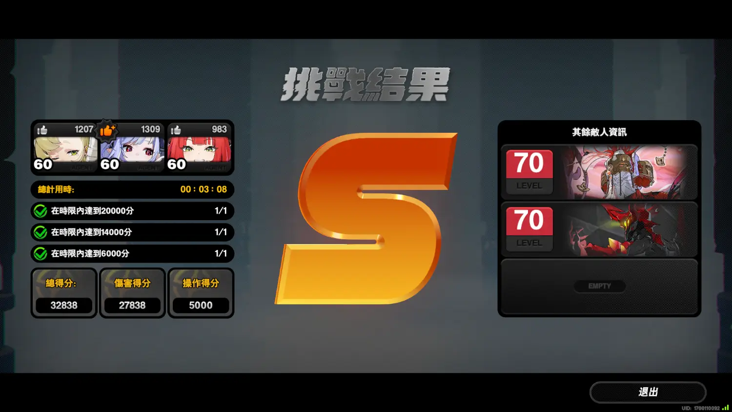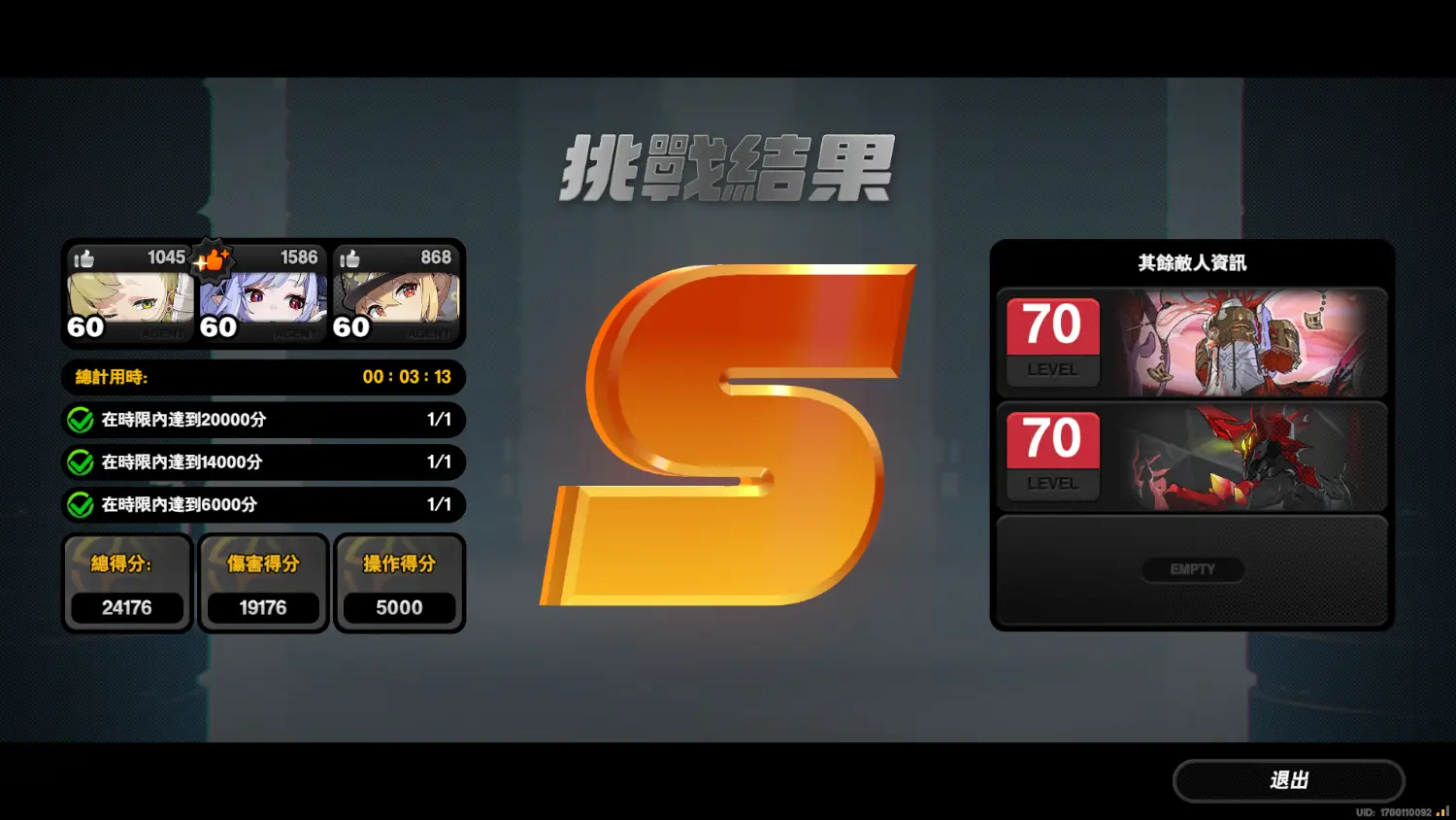 [絕區] 第一次全S來的比我想的快感謝後三關完全沒有物理抗性 青衣麗娜0+0,柏妮思1+0,派派2+1,可琳露西6+1 之前柏妮思的位置是格莉絲,擊破條 + 異常條盯到眼睛脫窗![[絕區] 第一次全S來的比我想的快 [絕區] 第一次全S來的比我想的快](https://i.imgur.com/G7ugMiPb.png)