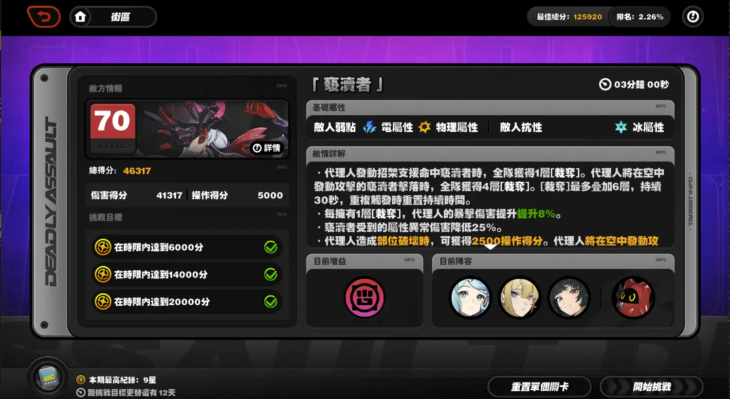 [絕區] 危局 被制裁了其實也不能說制裁 只是這次惡名龐培換成這機制 萊柏露打快速支援的 除了要閃避這隊不太需要跟敵人交流 要招架反而會讓腦袋混亂 尤其是萊特士氣沒滿就切上來心情上感覺很虧 還不如正常打放棄操作分 傷害還是沒問題的 不過這期buff有點意思 乾脆拿新練好的常駐來打看看![[絕區] 危局 被制裁了 [絕區] 危局 被制裁了](https://i.imgur.com/tGQFvwlb.jpg)