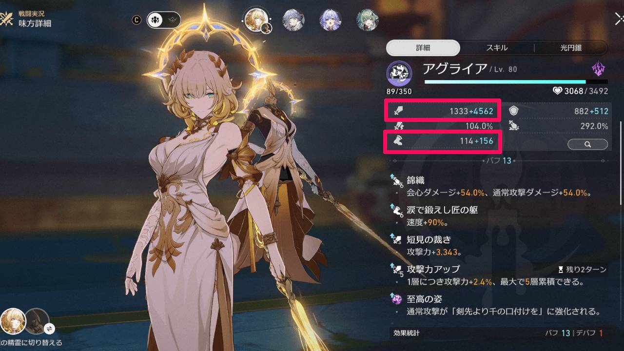 [鐵道] 阿格萊雅心得先看一下阿雅的面板 因為英豪套還沒刷好 所以現在是2攻2速 充能繩 166速 81/140 0+1 0+0牢日是133 剛好可以0t兩動 阿雅滿被動後剛好2倍牢日的速度![[鐵道] 阿格萊雅心得 [鐵道] 阿格萊雅心得](https://i.imgur.com/z0paTzcb.jpg)