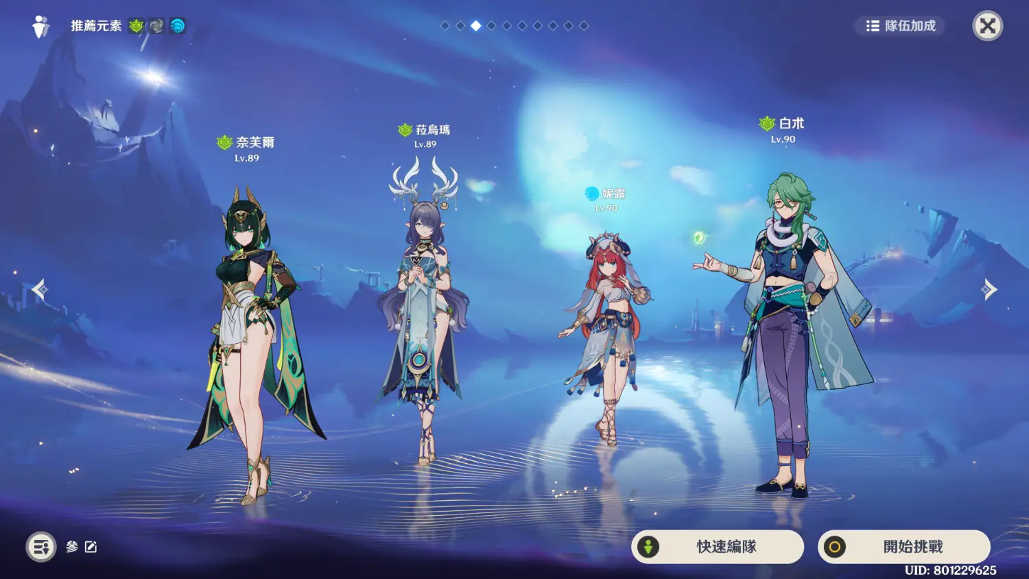 推薦一個我覺得用的滿順手的奈芙爾配隊 綺良良 6命 草套 生生生 祭禮劍 (感謝Valter板友) 艾諾 6命 紡月套 充水暴 納塔活動大劍 拉烏瑪 1命 穹境套 充精暴 天光的紡琴 奈芙爾 0命 穹境套 精精暴 魔導緒論7